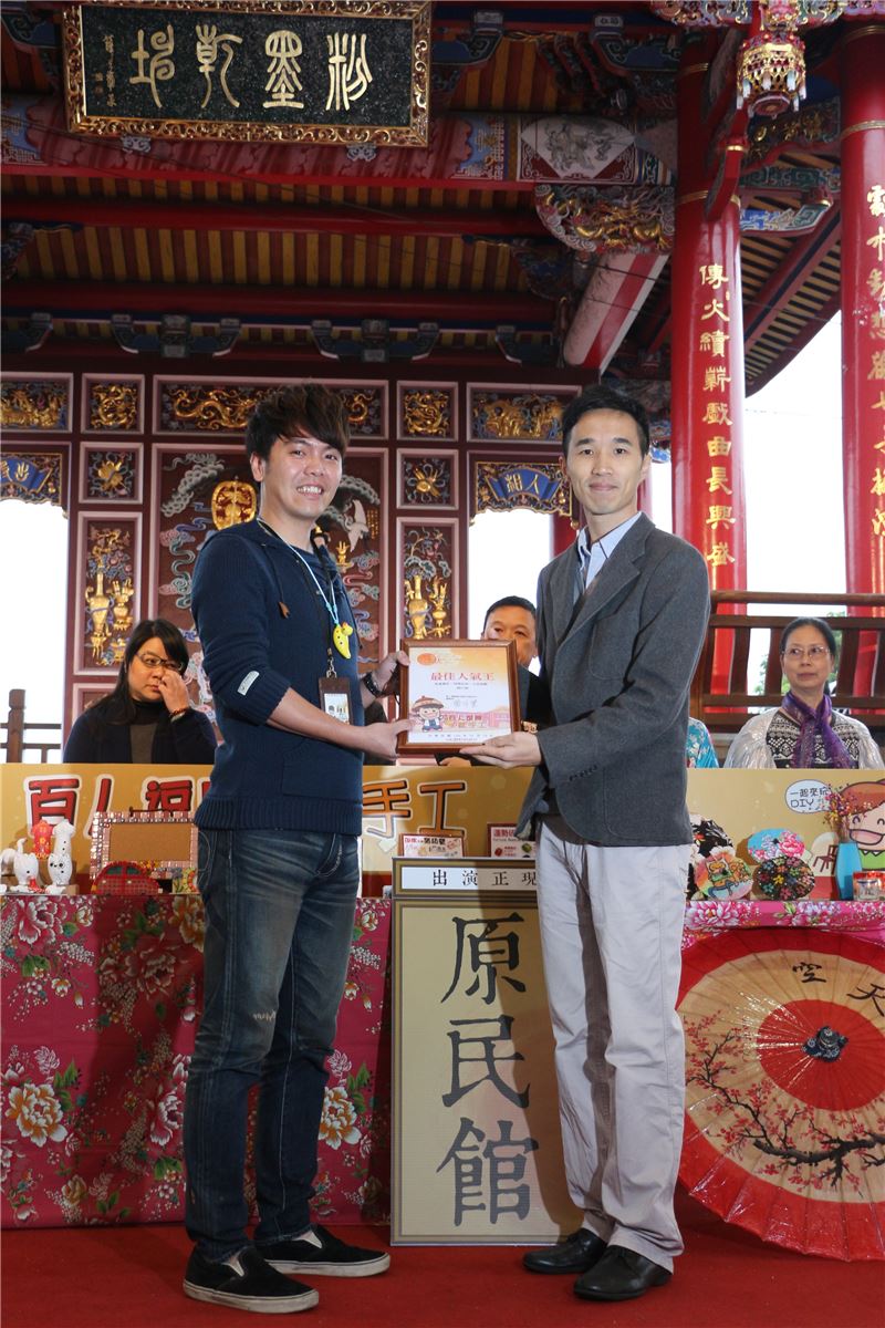 「是誠陶笛」推出多種獨特的造型,由民眾親自挑選,不但可以彩繪又可獲得老師親自指導吹奏,因而得到最佳人氣獎,店長陳是凡表示,「從沒想到會是我得獎,感謝傳藝中心給我這個機會」,本身經營民宿,來自羅東的張先生第一次來到傳藝中心,全程熱情參與,將神聖的一票獻給「是誠陶笛」,對於此次活動的感想為,「可以帶動熱鬧的氣氛,也讓我們瞭解產品特色,迫不及待想看到成果」!