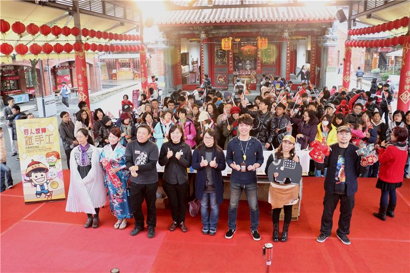 國立傳統藝術中心於傳承、推廣傳統藝術方面不遺餘力,包含傳統戲劇、民俗技藝、音樂、工藝等類別,結合園區展演空間,配合歲時節慶推出不同活動內容。在工藝推廣方面,除了於民藝街有多位藝師駐點展演及傳習街工藝師駐園創作外,也推出多種DIY體驗課程,兼顧遊憩與教育等功能。為回饋遊客對園區手工藝品的支持,今年特地舉辦「百人逗陣做手工」,於12月12日邀請100位民眾免費體驗人氣DIY商品,從19項商品中選出陶笛、布袋戲偶彩繪、排灣族串珠飾品、油紙傘彩繪、果凍蠟燭、皮革工藝鑰匙圈、陶瓷公仔彩繪、馬賽克拼貼相框……等10項,做為2014年傳藝園區主打。