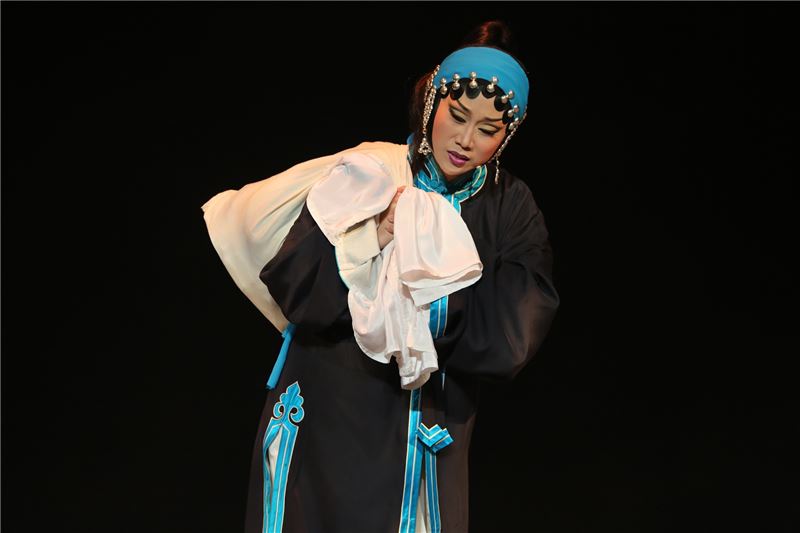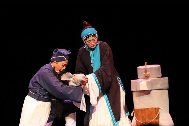 本次《白兔記》演出強調李三娘各種人生境遇的唱腔身段。其中如<瓜園離別>夫妻情深難捨難分的別離場面,<磨坊產子>李三娘無依無靠自力產子的淒苦坎坷,<井邊會>母子相逢卻不相識的悲情酸楚等繁複唱段與優美身段,都是該劇重建的亮點情節設計。